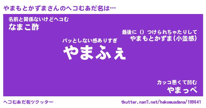 | 恥ずかしいあだ名 | 『プリティーやまもとかずま』『やまちん』 |