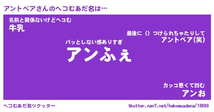 | ヒーロー風カッコイイあだ名 | 『スーパーアントベア』『天弓騎士アン』 |