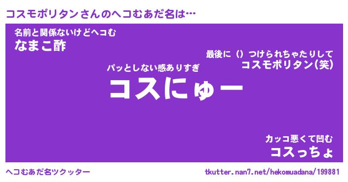 | ポケモン風あだ名 | 『コスチュウ』『コスモダネ』 |