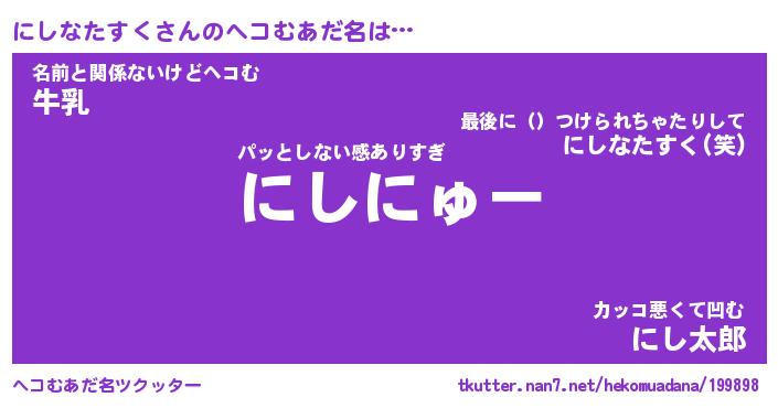 | ポケモン風あだ名 | 『ニシチュウ』『ニシナダネ』 |