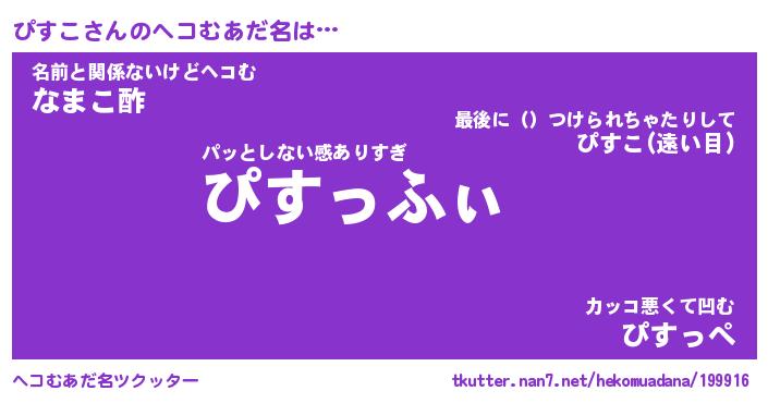 | 意味不明あだ名 | 『ペロリンぴすこ』『ぴすこフォーエバー』 |