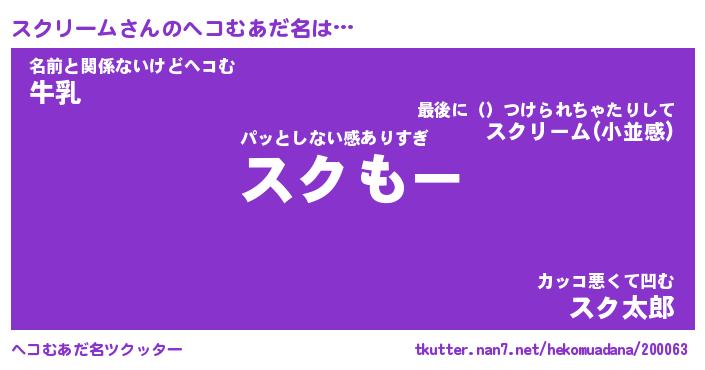 | ヒーロー風カッコイイあだ名 | 『スーパースクリーム』『天弓騎士スク』 |