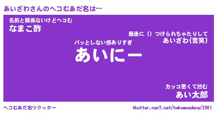 | 胡散臭い通販商品みたいなあだ名 | 『必ず成功するブレスレット…その名も「あいざわ」』 |
