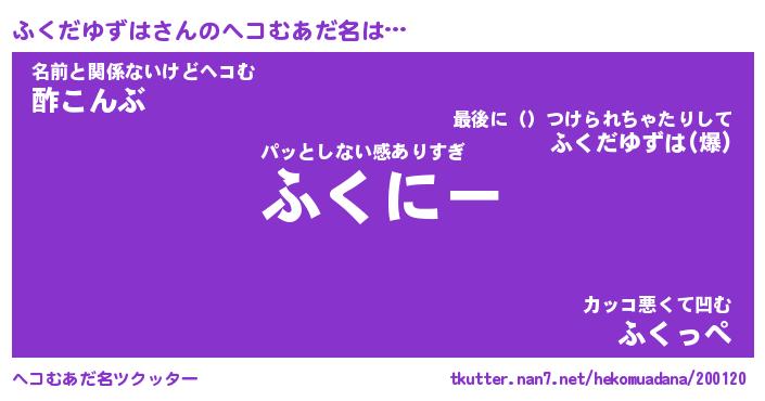 | ヒーロー風カッコイイあだ名 | 『スーパーフクダユズハ』『黄金騎士フク』 |