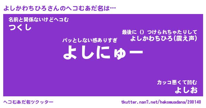 | ポケモン風あだ名 | 『ヨシチュウ』『ヨシカダネ』 |