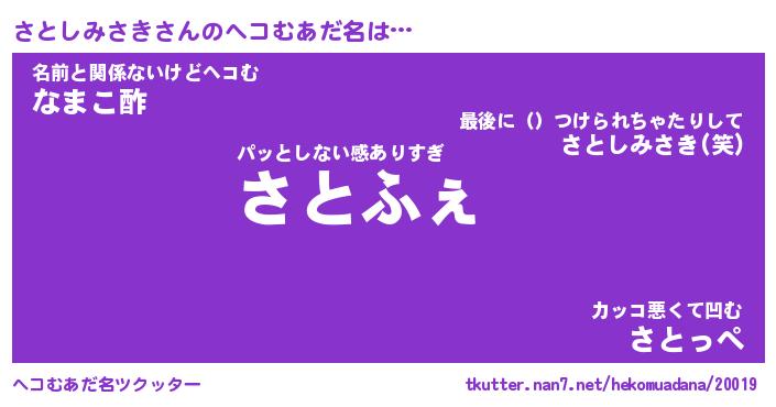 | 男性向けラノベタイトル風あだ名 | 『さとしみさきの憂鬱』 |