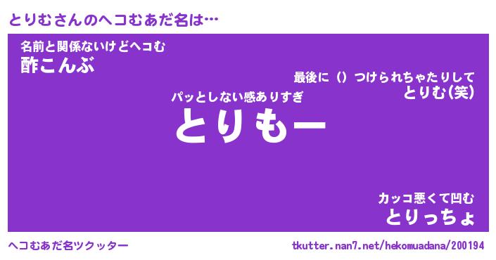 | 意味不明あだ名 | 『ペロリンとりむ』『とりむフォーエバー』 |