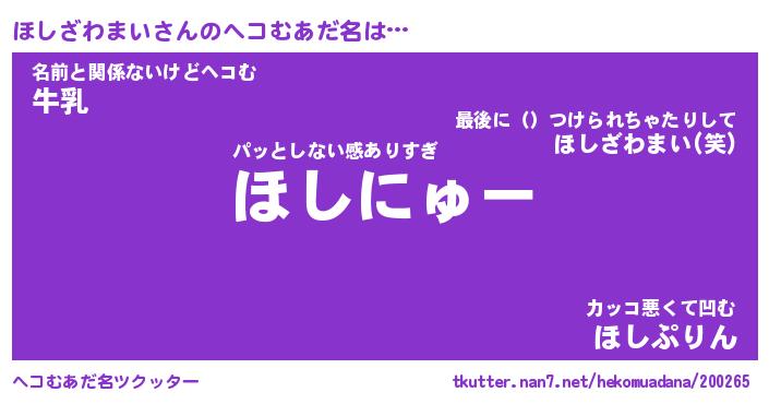 | ヒーロー風カッコイイあだ名 | 『スーパーホシザワマイ』『幻影騎士ホシ』 |