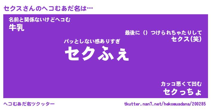 | ファンタジー風あだ名 | 『セクフェル』『エターナルセクスー』 |