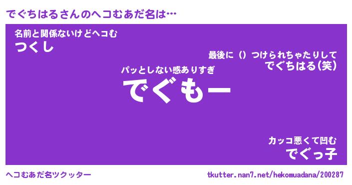 | 2回繰り返すあだ名 | 『でぐでぐ』『ででぐぐ』『がすがす』 |