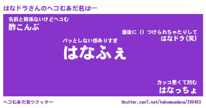 | 意味不明あだ名 | 『ペロリンはなドラ』『永久保存はなドラ』 |