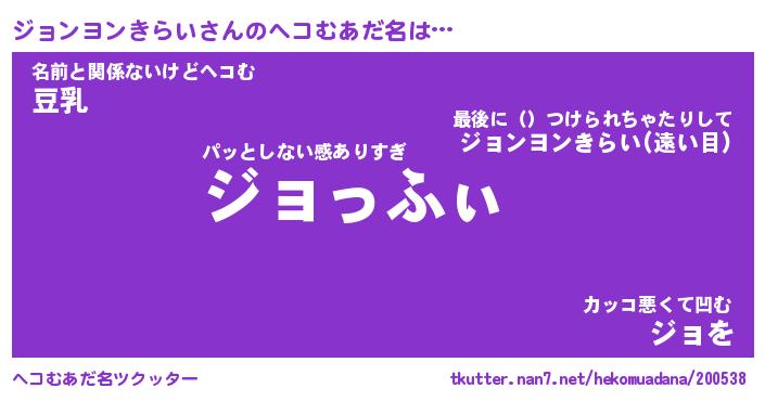 | 意味不明あだ名 | 『ペロリンジョンヨンきらい』 |