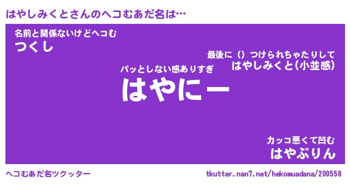 | 意味不明あだ名 | 『ペロリンはやしみくと』 |