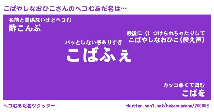 | 2回繰り返すあだ名 | 『こばこば』『ここばば』『うずうず』 |