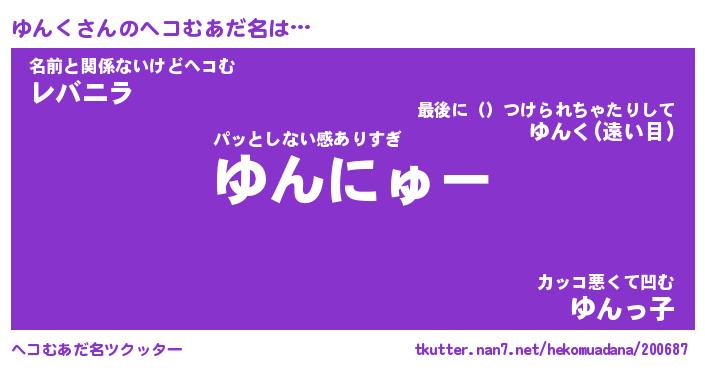 | 意味不明あだ名 | 『ペロリンゆんく』『ゆんくフォーエバー』 |