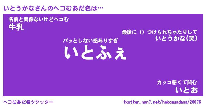| ヒーロー風カッコイイあだ名 | 『スーパーイトウカナ』『魔戒騎士イト』 |