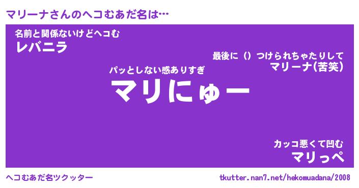 | ヒーロー風カッコイイあだ名 | 『スーパーマリーナ』『銀牙騎士マリ』 |