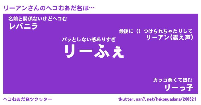| 意味不明あだ名 | 『ペロリンリーアン』『永久保存リーアン』 |