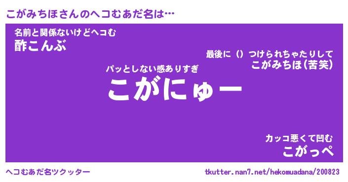 | 2回繰り返すあだ名 | 『こがこが』『ここがが』『こぽこぽ』 |