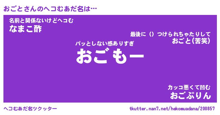 | ポケモン風あだ名 | 『オゴチュウ』『オゴトダネ』 |