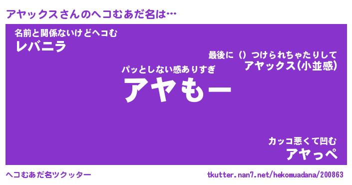 | ファンタジー風あだ名 | 『アヤフェル』『エターナルアヤックスー』 |