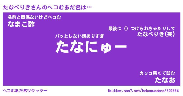 | ポケモン風あだ名 | 『タナチュウ』『タナベダネ』 |