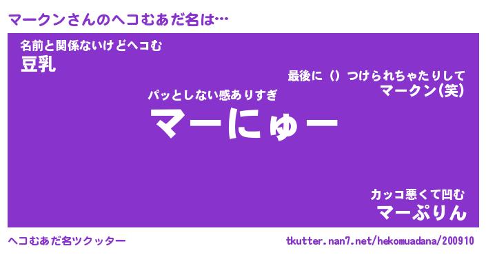 | 意味不明あだ名 | 『ペロリンマークン』『永久保存マークン』 |