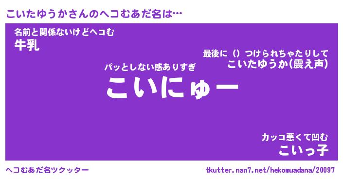 | 恥ずかしいあだ名 | 『プリティーこいたゆうか』『こいっちょ』 |