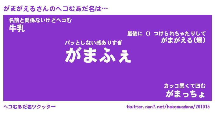 | 2回繰り返すあだ名 | 『がまがま』『ががまま』『おたおた』 |