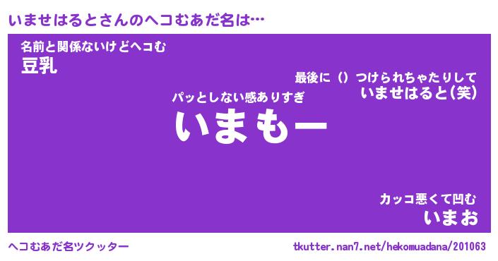 | ポケモン風あだ名 | 『イマチュウ』『イマセダネ』 |