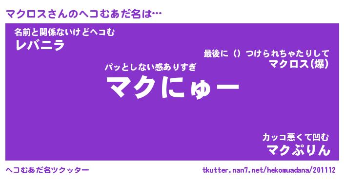 | 意味不明あだ名 | 『ペロリンマクロス』『永久保存マクロス』 |