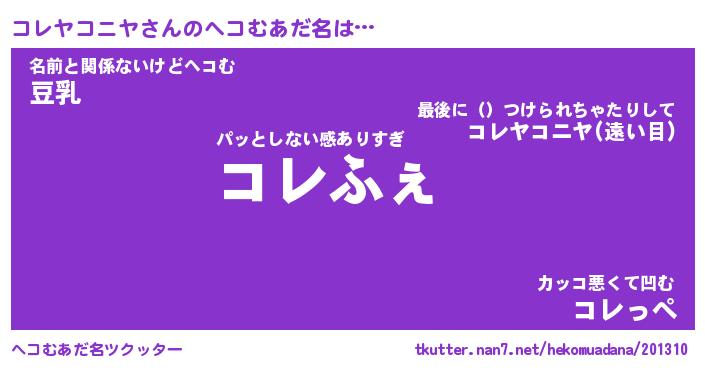 | ヒーロー風カッコイイあだ名 | 『スーパーコレヤコニヤ』『幻影騎士コレ』 |