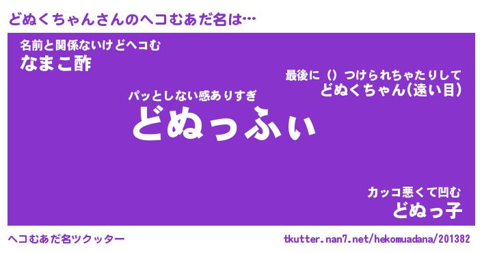 | 2回繰り返すあだ名 | 『どぬどぬ』『どどぬぬ』『がくがく』 |