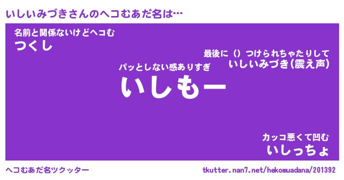 | ヒーロー風カッコイイあだ名 | 『スーパーイシイミヅキ』『天弓騎士イシ』 |