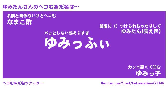 | 意味不明あだ名 | 『ペロリンゆみたん』『永久保存ゆみたん』 |