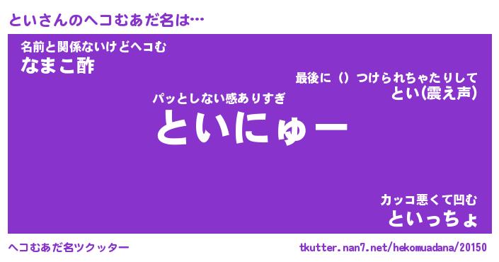 | 意味不明あだ名 | 『ペロリンとい』『といフォーエバー』 |