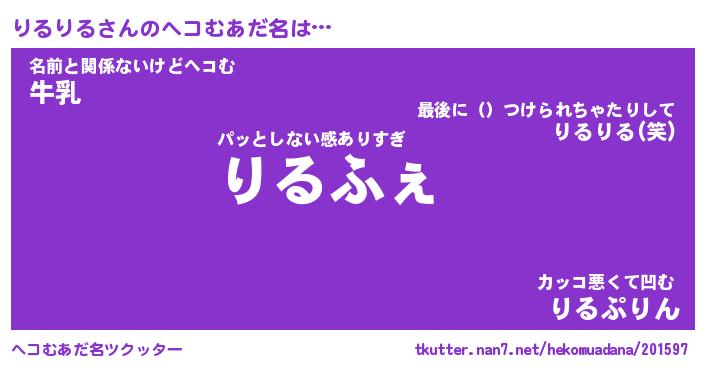 | 意味不明あだ名 | 『ペロリンりるりる』『永久保存りるりる』 |