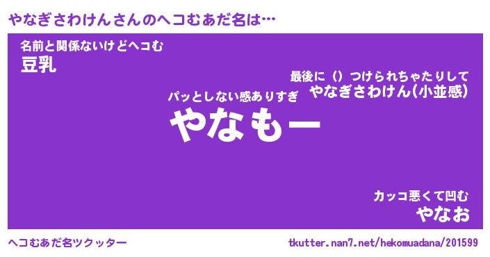 | 男性向けラノベタイトル風あだ名 | 『やなぎさわけんの憂鬱』 |