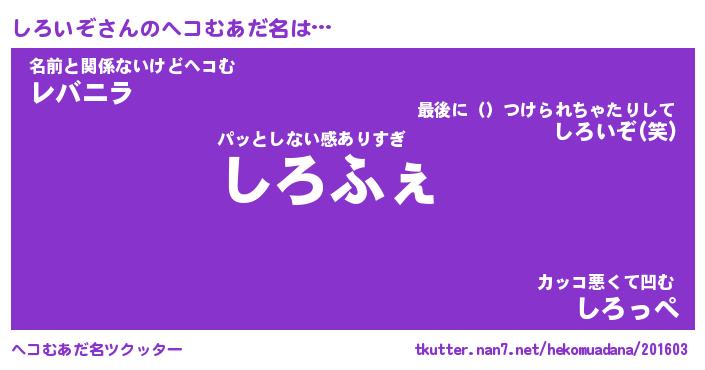 | ファンタジー風あだ名 | 『シロフェル』『エターナルシロイゾー』 |