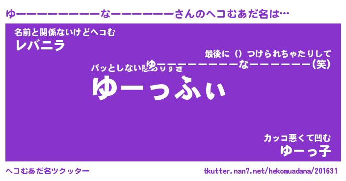 | 胡散臭い通販商品みたいなあだ名 | 『モテモテ間違いなし霊験あらたかなお札…その名も「ゆーーーーーーーーなーーーーーー」』 |