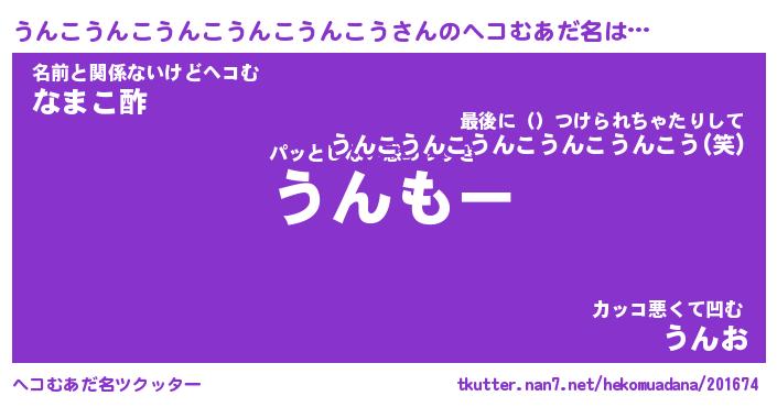 | ピコ太郎風あだ名 | 『ウコ四郎』『ピウ四郎』『ウン太郎』 |