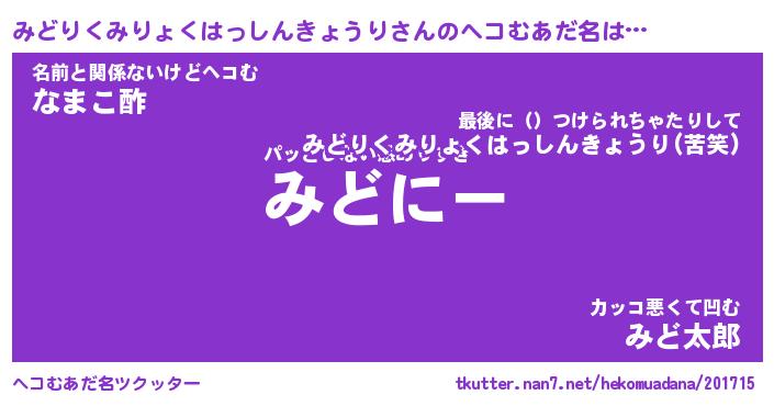 | ヒーロー風カッコイイあだ名 | 『スーパーミドリクミリョクハッシンキョウリ』 |