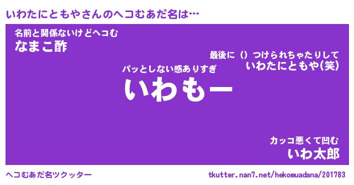 | ツイッター | いわたにともやさんのツイッターID『fukuyoka_kun』 |