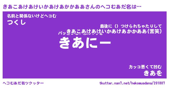 | 恥ずかしいあだ名 | 『プリティーきあこあけあけいかあけあかかああ』 |