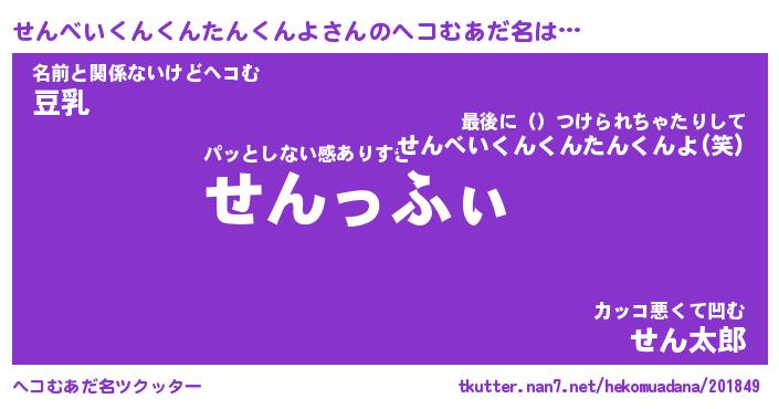 | ヒーロー風カッコイイあだ名 | 『スーパーセンベイクンクンタンクンヨ』 |
