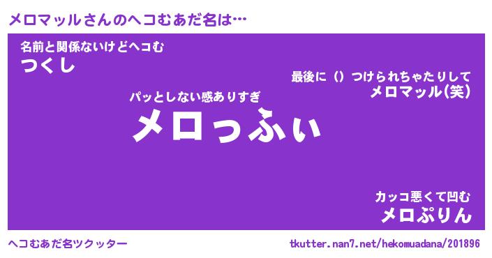 | ファンタジー風あだ名 | 『メロフェル』『エターナルメロマッルー』 |