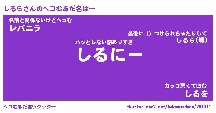 | 意味不明あだ名 | 『ペロリンしるら』『しるらフォーエバー』 |