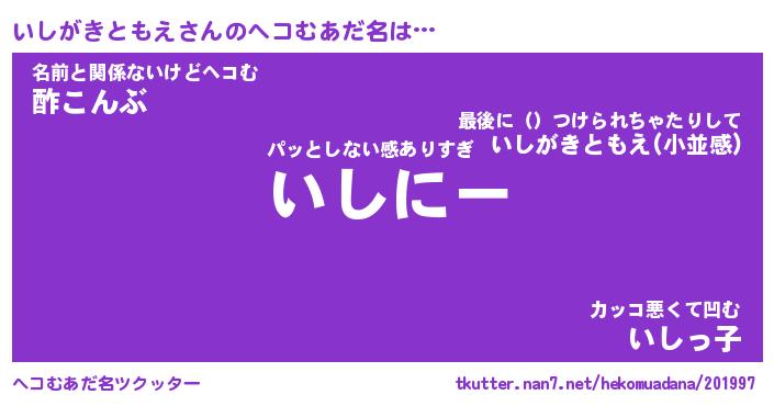 | 可愛いあだ名 | 『いんいん』『いしちー』 |
