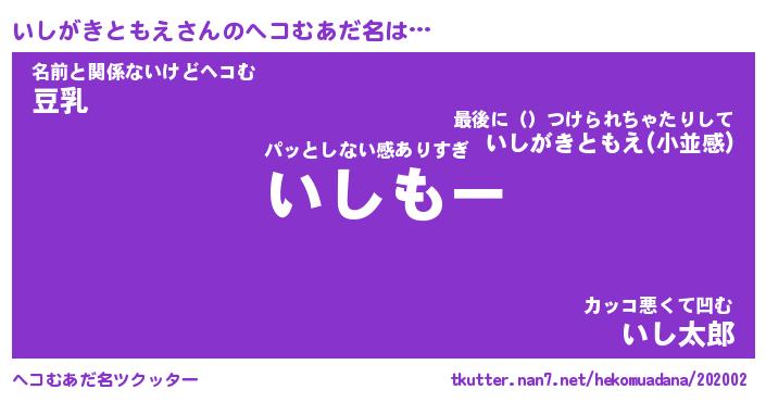 | ピコ太郎風あだ名 | 『イコ四郎』『ピイ十郎』『イシ八郎』 |