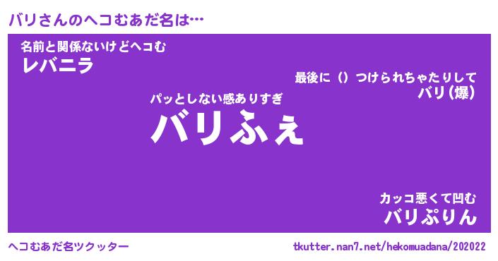 | 意味不明あだ名 | 『ペロリンバリ』『バリフォーエバー』 |